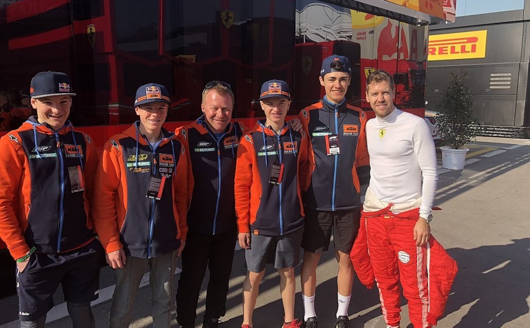 Das Vorbereitungscamp in der Didi Lacher Motocross Training Schule im Februar in Spanien war für Lion Florian nicht nur wegen der sehr guten Trainingsbedingungen ein echtes Highlight. Denn der 16-Jährige aus Erding machte mit seinen Trainingspartnern auch einen Abstecher auf den Circuit de Catalunya vor den Toren von Barcelona, wo gerade die Formel-1-Stars ihre Testfahrten für den Saisonstart absolvierten. Neben einem Blick hinter die Kulissen der Teams Red Bull und Toro Rosso traf Florian auch Ferrari-Star Sebastian Vettel. Der viermalige Weltmeister ist der prominenteste und erfolgreichste frühere Förderkandidat der ADAC Stiftung Sport. Florians neuer Kader-Kollege Constantin Piller (14/Eichendorf) war im Winter erfolgreich in der Halle beim ADAC Super Cross unterwegs. Nach einem zweiten sowie zwei dritten Plätzen belegte er in der Gesamtwertung den Bronze-Rang.